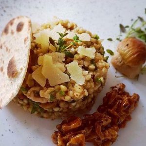 Uczniowie klasy II c – Mikołaj Wosik, Jan Rafalski i Klaudia Szczygieł, którzy biorą udział w konkursie kulinarnym „Wyzwanie Makro Chefa”, przygotowali konkursowe danie – Kaszotto.