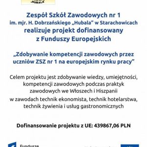 To już drugi rok realizacji projektu pt. „Zdobywanie kompetencji zawodowych uczniów ZSZ nr 1 na europejskim rynku pracy” o numerze 2016-1-PL01-KA102-023946 realizowanego w ramach projektu „Staże zagraniczne dla uczniów i absolwentów szkół zawodowych oraz mobilność kadry kształcenia zawodowego” ze środków PO WER…