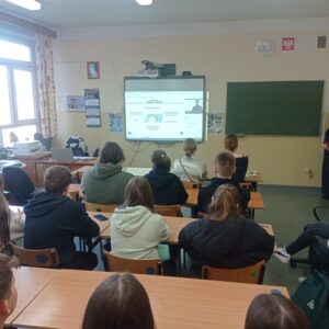 11 lutego 2025 r. z okazji Dnia Bezpiecznego Internetu, uczniowie klasy II A, III B i IV C, kształcący się w zawodzie technika ekonomisty wraz z nauczycielami p. Anitą Jabłońską, p. Renatą Rychlik i p. Anną Klamką, brali udział w ogólnopolskiej lekcji online na temat: „O cyfrowym…
