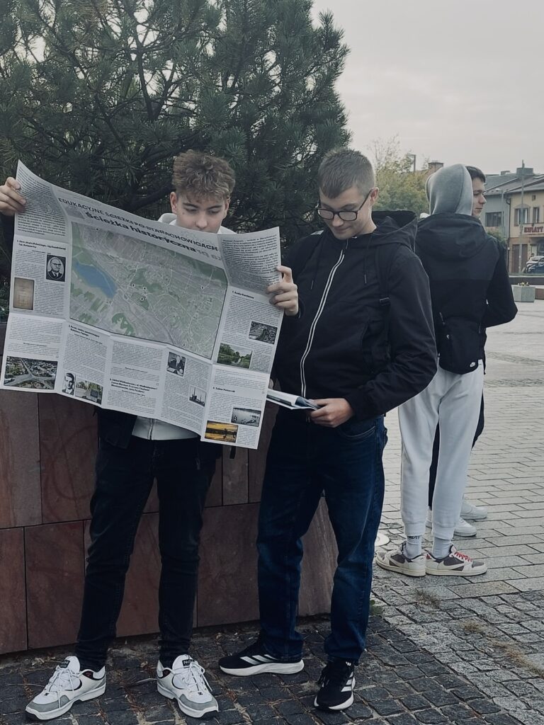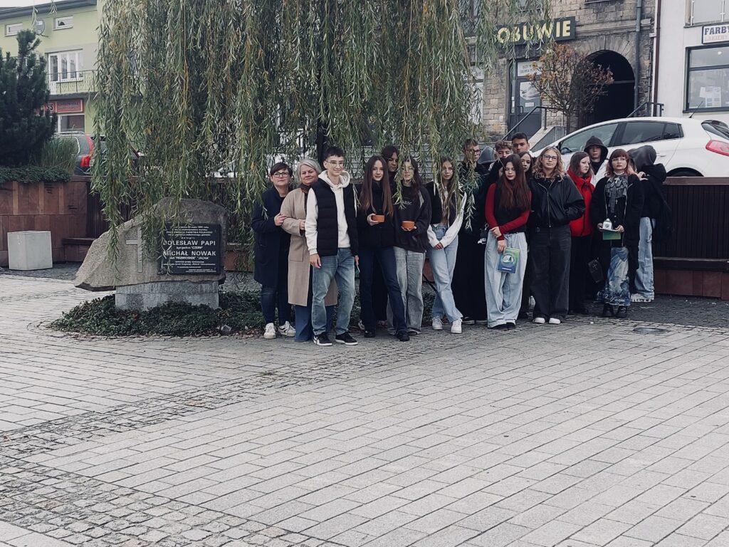 9 października 2025 r. klasa 1 b wraz z wychowawcą p. Renatą Nowak i opiekunem p. Anitą Jabłońską udała się na spacer po naszym mieście. Nie był to jednak zwykły spacer, lecz udział w projekcie edukacyjnym „Szlakiem dziedzictwa. Edukacyjne ścieżki po Starachowicach”, który poświęcony jest lokalnej przyrodzie i ludziom tworzącym historię regionu. W ramach projektu stworzonego przez Muzeum Przyrody i Techniki powstał papierowy przewodnik, który opisuje obie ścieżki i mapa, która wskazuje, jak się poruszać. Bardzo cieszy fakt, że młodzież naszej szkoły chce poznawać historię Starachowic oraz walory przyrodnicze i bogactwo kulturowe naszego regionu. Okazuje się, że integrację zespołu klasowego można połączyć z edukacją, a wspólnie spędzony czas jest w tym wypadku szczególnie wartościowy. Gratulujemy pomysłu!