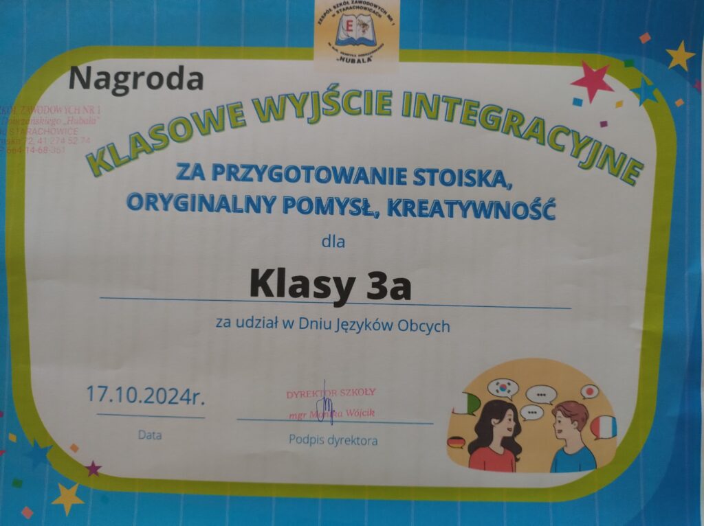 W poniedziałek 4 listopada 2024 r. dwie klasy postanowiły wykorzystać swoją nagrodę, czyli klasowe  wyjście integracyjne za przygotowanie stoiska, oryginalny pomysł i kreatywność w związku z udziałem w Dniu Języków Obcych. Klasa III a wraz z wychowawcą p. E. Bernat i p. D. Dziurą udała się do Kielc. W kinie w Galerii Echo młodzież obejrzała film akcji nakręcony na podstawie komiksów Marvela  pt. „Venom: The Last Dance”. Po projekcji był czas na wspólny posiłek, a także spacer po mieście ulicą Sienkiewicza.