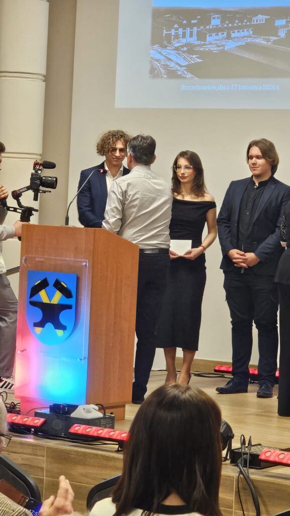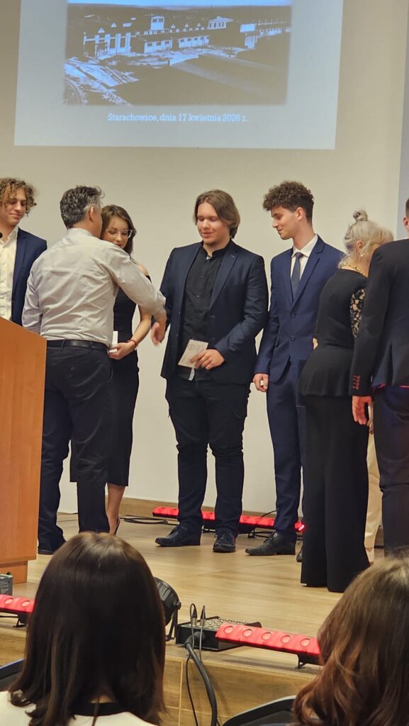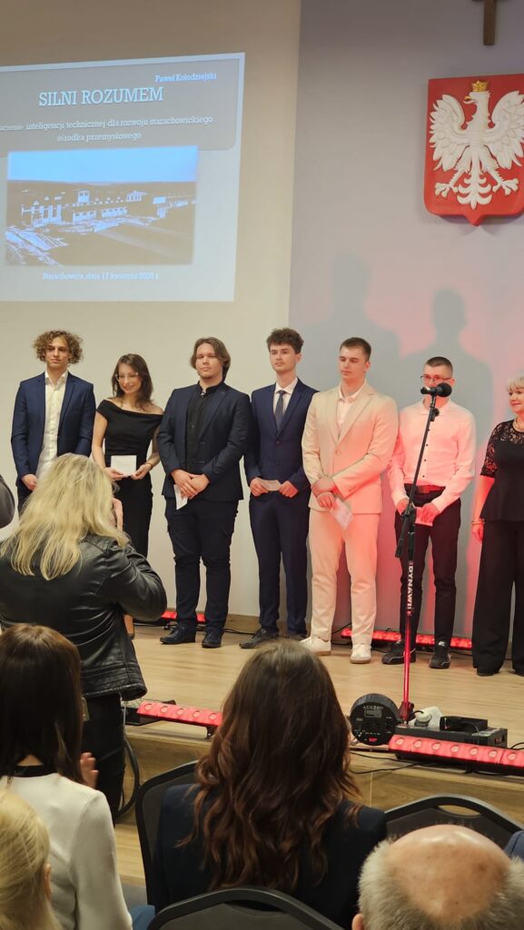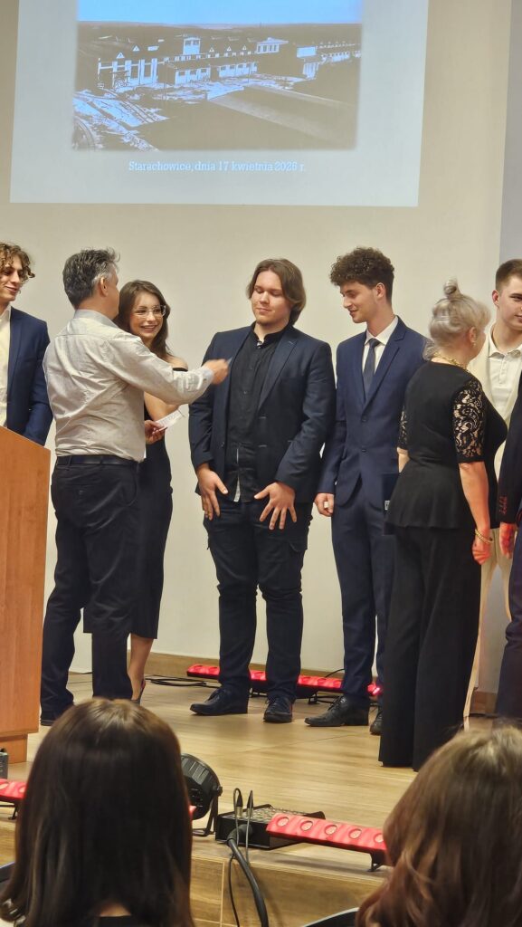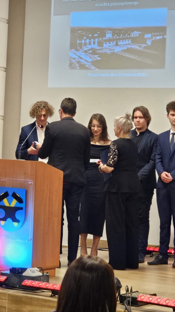 17 kwietnia 2026 r. w sali Olimpia Urzędu Miejskiego w Starachowicach świętowano jubileusz Stowarzyszenia Inżynierów, Techników i Mechaników Polskich. Oddział w Starachowicach obchodzi 100 – lecie istnienia. Była to wyjątkowa okazja do podsumowania dorobku środowiska, które wnosi ogromny wkład w rozwój naszego regionu. Podczas wydarzenia uhonorowano między innymi uczniów naszej szkoły biorących udział w konkursach zawodowych docenionych przez SIMP. Atrakcyjne nagrody dla uzdolnionej technicznie młodzieży otrzymali uczniowie z klasy 4 c kształcący się w zawodzie technik chłodnictwa i klimatyzacji: Marcel Peryt, Kacper Fiut oraz Miłosz Mroczkowski. Gratulujemy i życzymy kolejnych sukcesów.