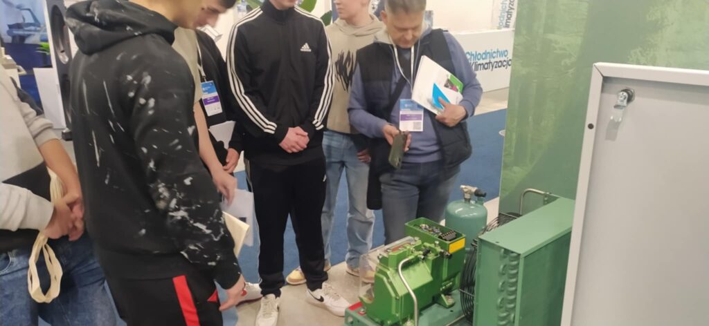 W dniu 21 maja 2025 r. uczniowie klas : 1G , 2C i 3C kształcący się w zawodzie technik chłodnictwa i klimatyzacji wraz z opiekunami panami Marcinem Przygodą i Tomaszem Wójtowiczem uczestniczyli w premierowej edycji Międzynarodowych Targów Technologii Chłodniczej. COLD-TECH Poland to kluczowe wydarzenie branżowe prezentujące technologie chłodnicze dla przemysłu ciężkiego, maszynowego i przetwórczego. Pozwala poznać innowacje w klimatyzacji budynków, chłodzeniu transportu, automatyzacji systemów oraz rozwiązania dla efektywności energetycznej.