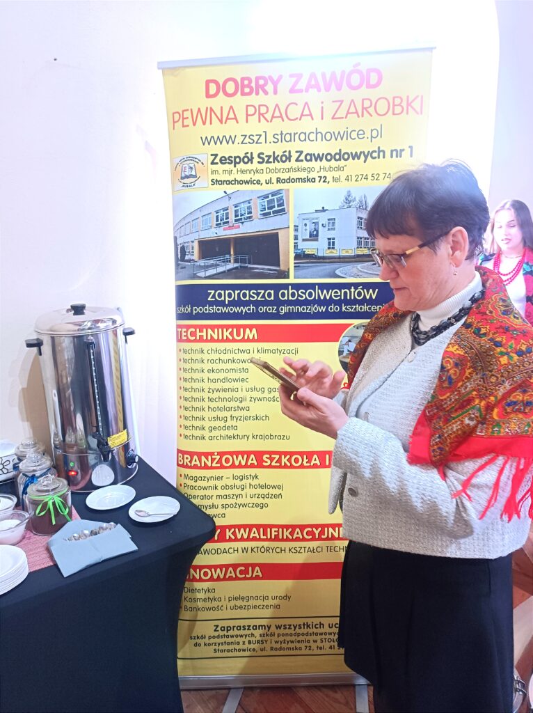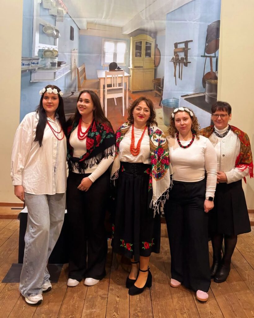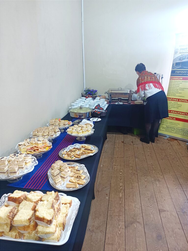 W otwarciu wystawy uczestniczyły uczennice z klasy 4 b kształcące się w zawodzie technik żywienia i usług gastronomicznych. Były to Maja Szpankowska, Małgorzata Żurowska oraz Julia Kiepas, które pod opieką p. Zofii Adamczyk i p. Weroniki Wiśnios, zaprezentowały przygotowane specjalnie na tę okazję tradycyjne potrawy kuchni regionalnej.