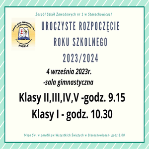 4 września 2023 r. rozpoczęliśmy nowy rok szkolny. Wypoczęci i gotowi na nowe wyzwania członkowie społeczności Zespołu Szkół Zawodowych nr 1 spotkali się w sali gimnastycznej, gdzie wszystkich zgromadzonych powitała pani dyrektor Monika Wójcik. Pani dyrektor życzyła młodzieży…
