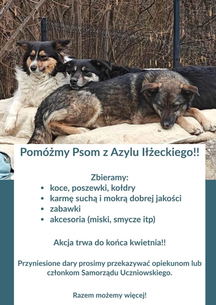 Dary zbierają opiekunowie i członkowie Samorządu Szkolnego. Zbiórka trwa do końca kwietnia.