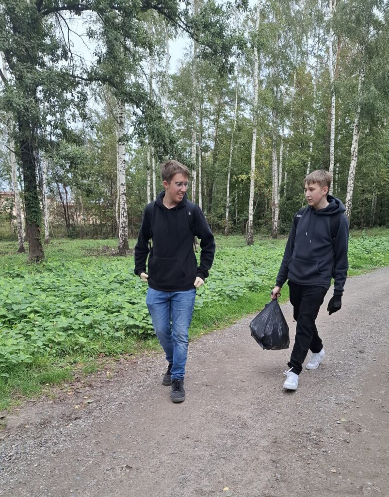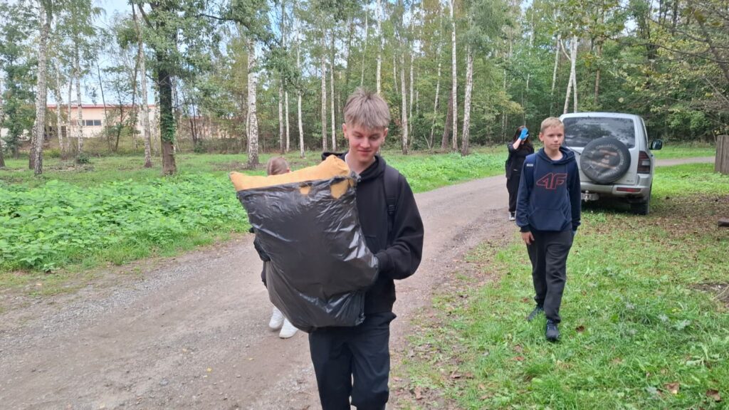 19 września 2025 r. uczniowie klasy IV d oraz klasy II g wraz z opiekunami: p. Beatą Pomorską, Agnieszką Urbańczyk oraz Tomaszem Szczygłem wzięli udział w ogólnopolskiej Akcji Sprzątanie Świata. Tegoroczna akcja przebiegała pod hasłem „W naturę z kulturą”.