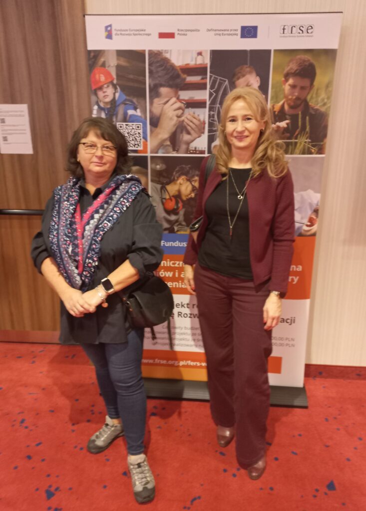 W dniu 21 października 2025 r. panie Ewa Góźdź oraz Renata Rychlik uczestniczyły w szkoleniu dla realizatorów rozpoczynających przedsięwzięcia w ramach projektu „Zagraniczna mobilność edukacyjna uczniów i absolwentów oraz kadry kształcenia zawodowego (VET-2)”, realizowanego ze środków programu FERS na zasadach Programu Erasmus+, sektor Kształcenie i szkolenia zawodowe (Konkurs 2025).