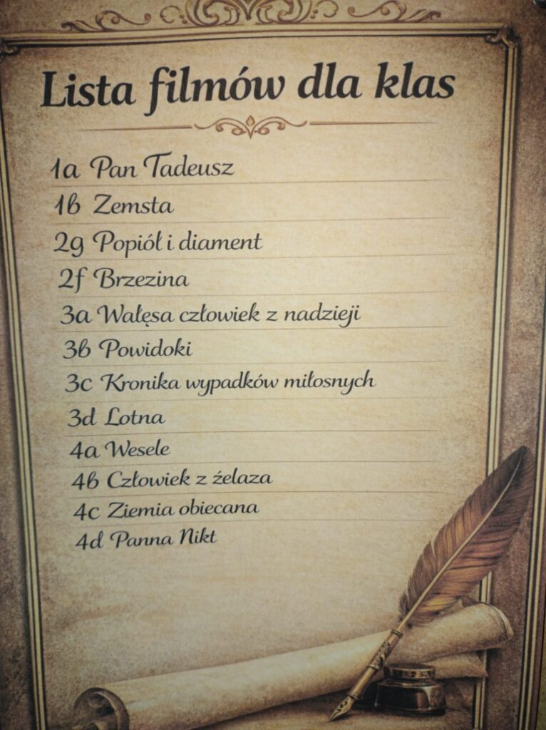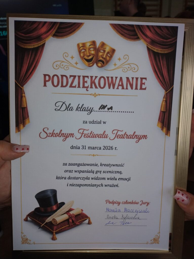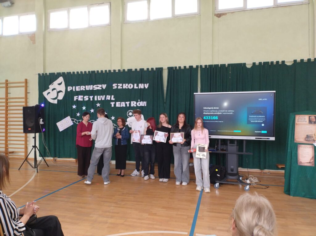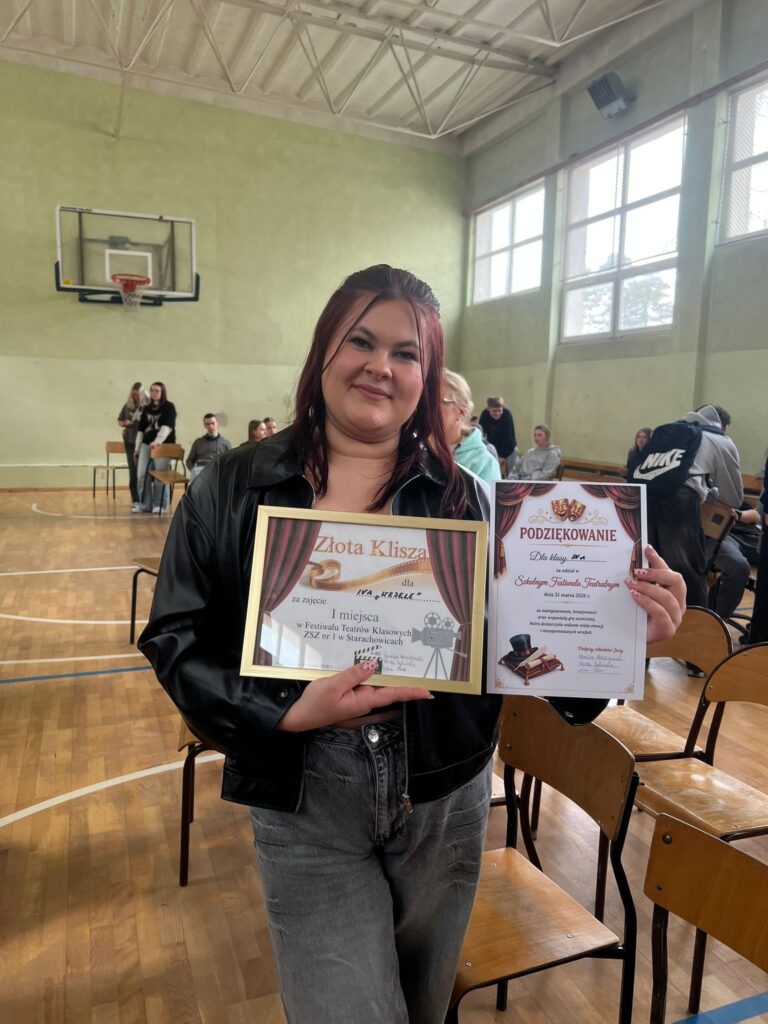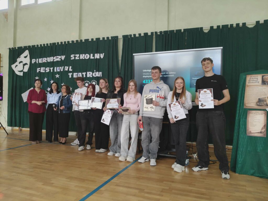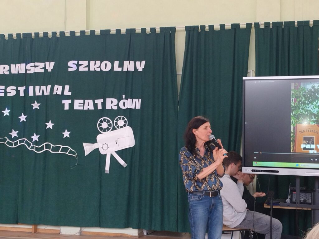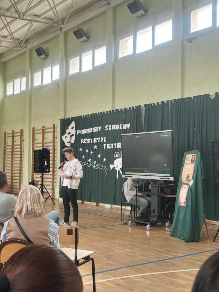31 marca 2026 r. odbył się w naszej szkole Szkolny Festiwal Teatralny. Motywem przewodnim była twórczość wybitnego polskiego reżysera Andrzeja Wajdy. Nieprzypadkowo młodzież przyjrzała się bliżej jego dokonaniom artystycznym. Z inicjatywy Senatu Rzeczypospolitej Polskiej rok 2026 został ogłoszony Rokiem Andrzeja Wajdy.  To świetna okazja i właściwy moment, by powrócić do twórczości mistrza i spojrzeć na jego filmy świeżym okiem.  Uczniowieposzczególnych klas mieli za zadanie zaprezentować scenę z wylosowanego filmu.  Na ich prośbę została zmieniona forma prezentacji z teatralnej na filmową. We wtorek mieliśmy okazję podziwiać efekty pracy naszej wspaniałej młodzieży. Jury w składzie: pani wicedyrektor Monika Maciejczak, pani Aneta Bykowska i pani Anna Tota wyłoniło zwycięzców. Pierwsze miejsce i Złotą Kliszę zdobyła klasa 4 a, która zaprezentowała sceny z „Wesela”. Drugie miejsce zajęła klasa 4 b z sugestywną interpretacją scen z filmu „Człowiek z żelaza” , zdobywając tym samym Srebrną Kliszę. Brązową Kliszę otrzymała klasa 1 a, która przedstawiła sceny z „Pana Tadeusza”.  Były też wyróżnienia za najlepszą rolę kobiecą i męską. W pierwszej kategorii jury doceniło Ulianę Hladkovą z klasy  2 f.  Najlepszym aktorem został Konrad Wrzesień z klasy 4 b.