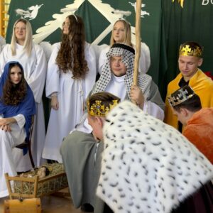 19 grudnia odbyły się w naszej szkole jasełka. W role Maryi, Józefa, pasterzy, króli i aniołów profesjonalnie wcielili się uczniowie z klas: 3a, 2g, 2f oraz 4b. Sceny aktorskie przeplatane były pastorałkami i kolędami tworzącymi atmosferę drogich dni z Betlejem…