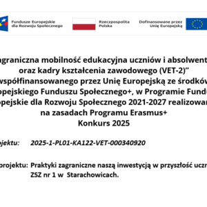 Ogłoszenie dotyczące nowego projektu „Praktyki zagraniczne naszą inwestycją w przyszłość uczniów ZSZ nr 1 w Starachowicach.”