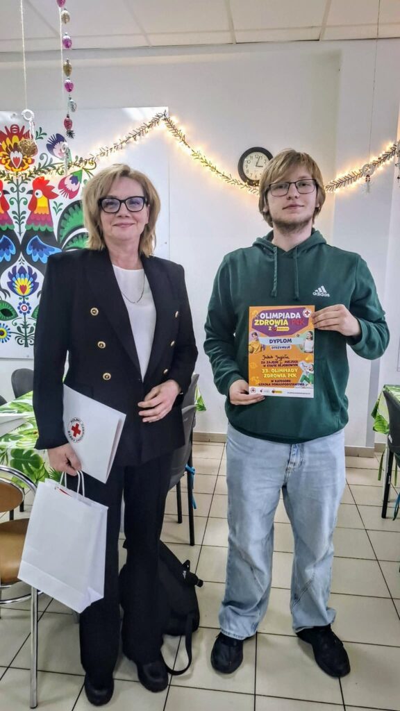 Z ogromną dumą informujemy, że Jakub Jagieła, uczeń klasy IV D Zespołu Szkół Zawodowych nr 1 w Starachowicach, zdobył I miejsce w 33. Olimpiadzie Zdrowia PCK w kategorii szkół ponadpodstawowych! Olimpiada Zdrowia PCK to ogólnopolski konkurs, który już od 33 lat promuje wśród młodzieży wiedzę o zdrowiu, zdrowym stylu życia oraz postawy prospołeczne . Organizatorem wydarzenia jest Polski Czerwony Krzyż, a od kilku lat olimpiada realizowana jest we współpracy z siecią marketów Biedronka .