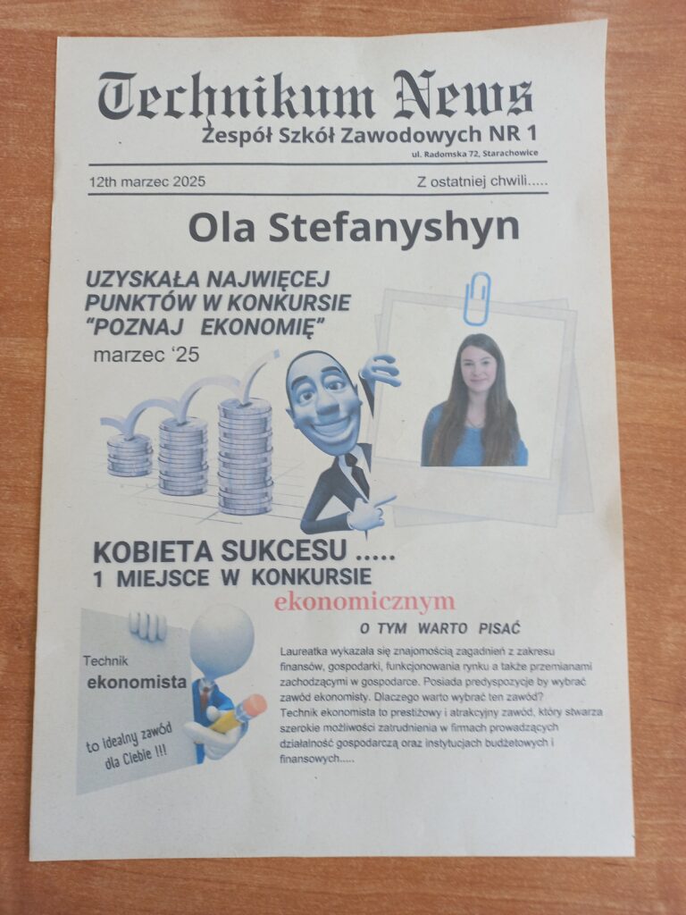 Przybyli uczniowie mieli okazję porozmawiać z nauczycielami i uczniami Technikum nr 1 na temat interesujących ich kierunków kształcenia. Samorząd uczniowski przygotował kalendarze odliczające tygodnie do egzaminu ósmoklasisty z zadaniami na dany tydzień, a ekonomiści przygotowali krótki quiz ze swojej dziedziny, w którym nagrodą był dyplom w formie wycinka ze strony gazetowej.