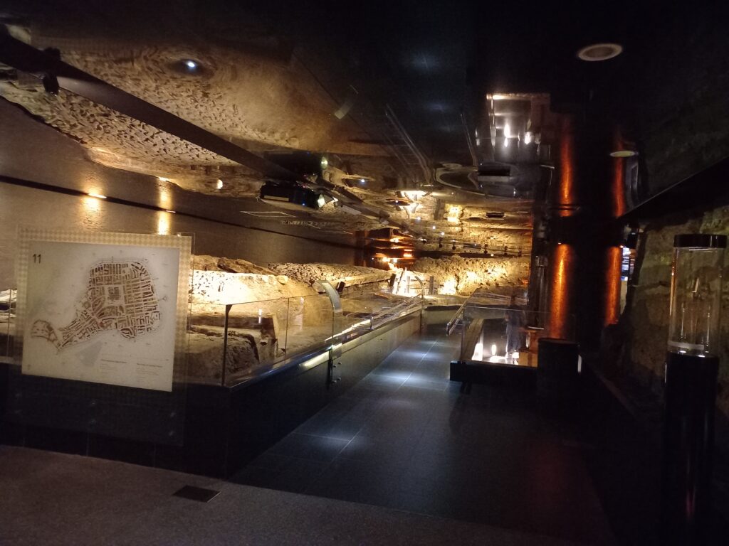 Następnym punktem wycieczki było zwiedzanie Muzeum Podziemia Rynku, które zlokalizowane jest dosłownie pod Sukiennicami i Rynkiem Głównym. Przechodząc przez kurtynę z pary wodnej przesłaniającą wejście do muzeum, zwiedzający wkraczają w zupełnie inną rzeczywistość.