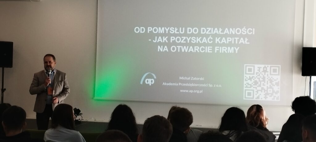 „Formy wsparcia na rynku pracy” – podczas nich uczniowie poznali różne możliwości wsparcia i finansowania dla młodych przedsiębiorców.