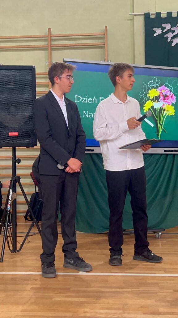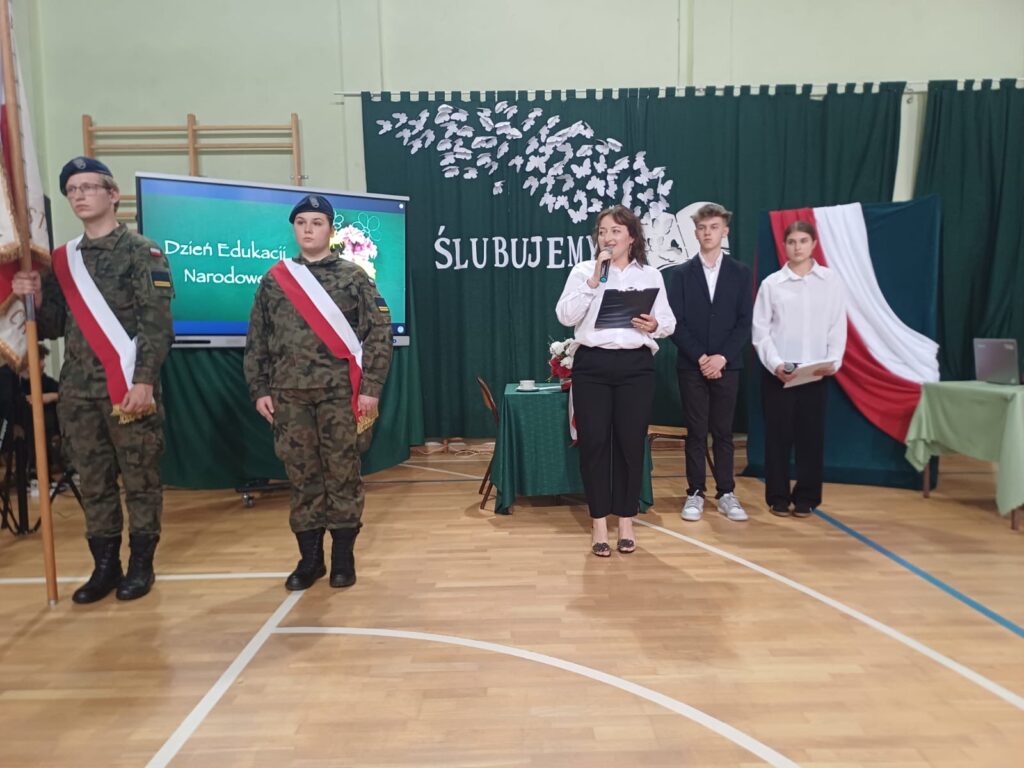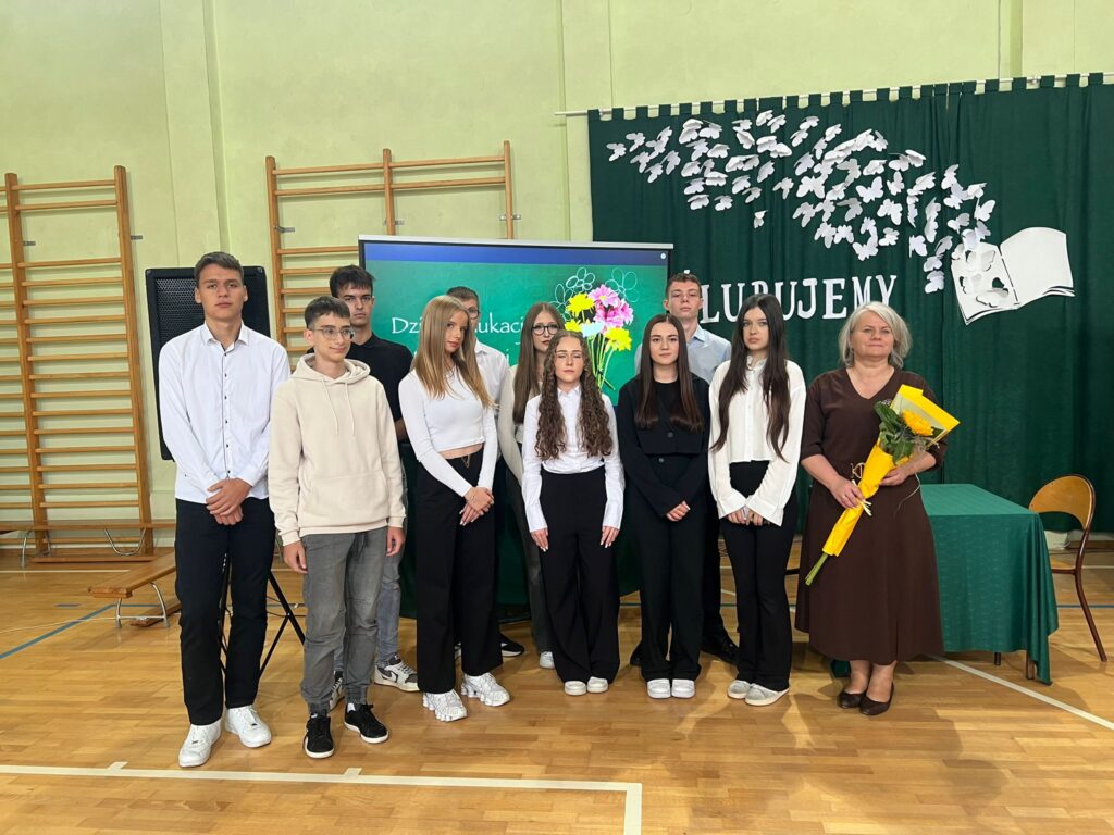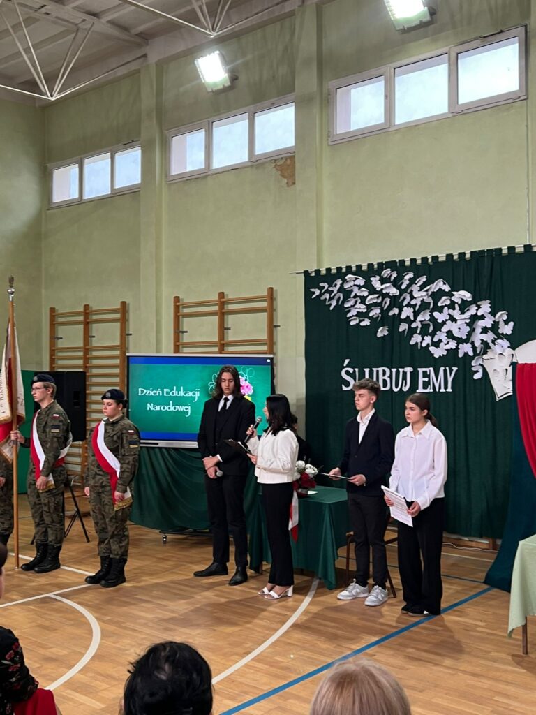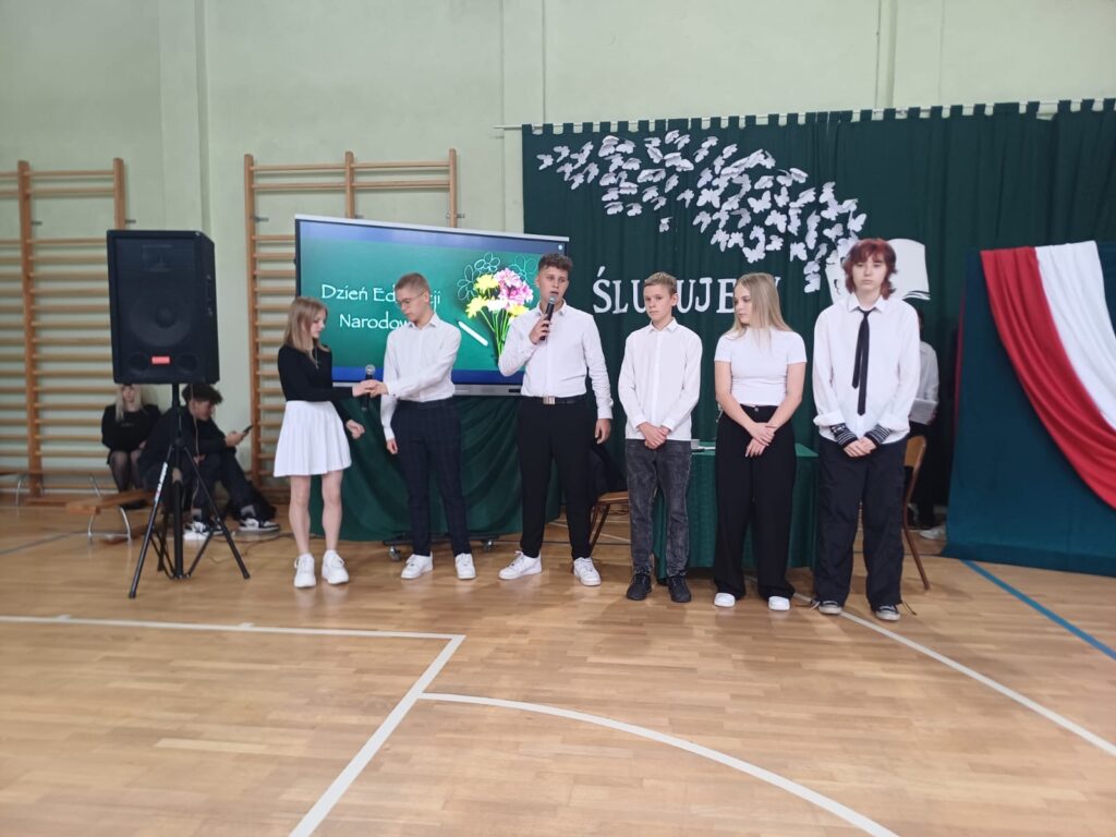 Po ślubowaniu „pierwszoklasistów”, społeczność Zespołu Szkół Zawodowych nr 1 obchodziła jeszcze jedną bardzo ważną uroczystość – Dzień Edukacji Narodowej . Jest to święto polskiej szkoły, nauczycieli, uczniów, pracowników administracji i obsługi. Z tej okazji przedstawiciele Samorządu Uczniowskiego Natalia Bałtowska i Michał Niewczas złożyli Gronu Pedagogicznemu najserdeczniejsze życzenia oraz podziękowali za codzienny trud, cierpliwość i wyrozumiałość .