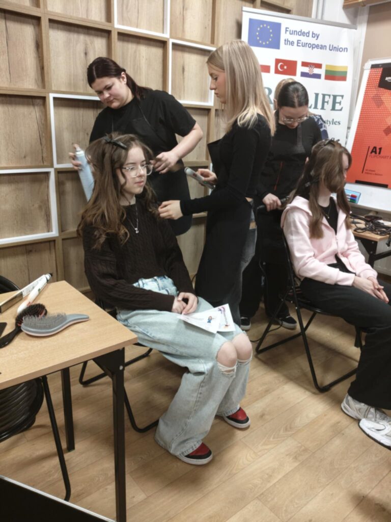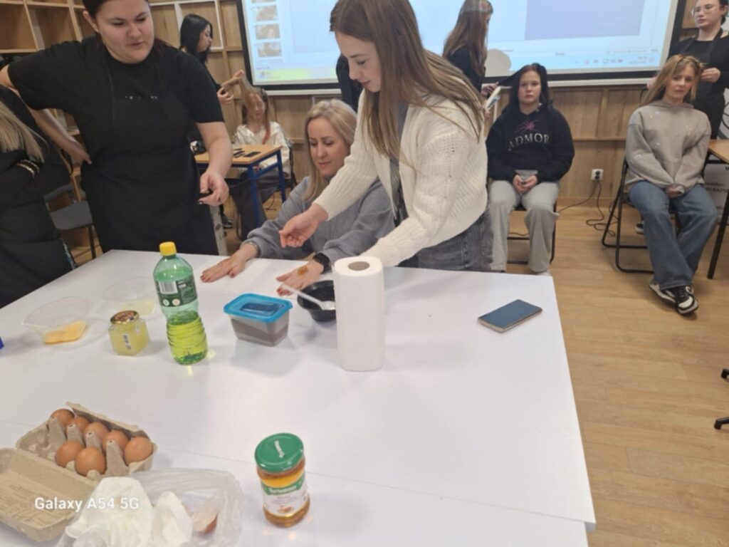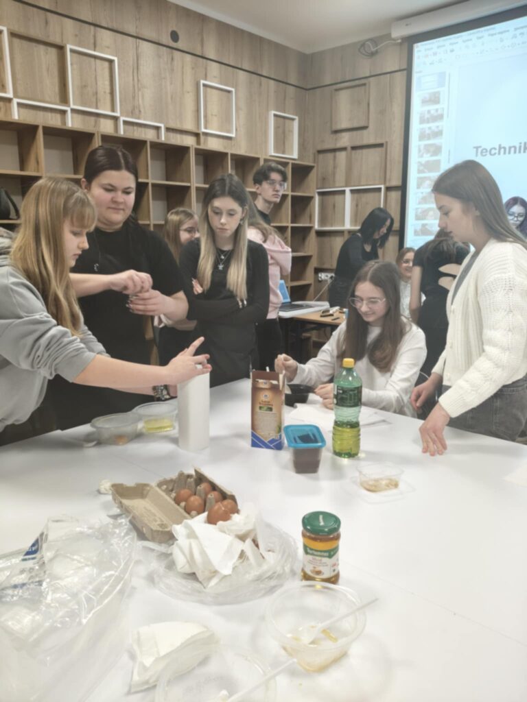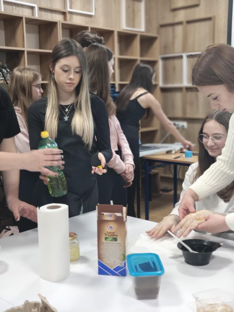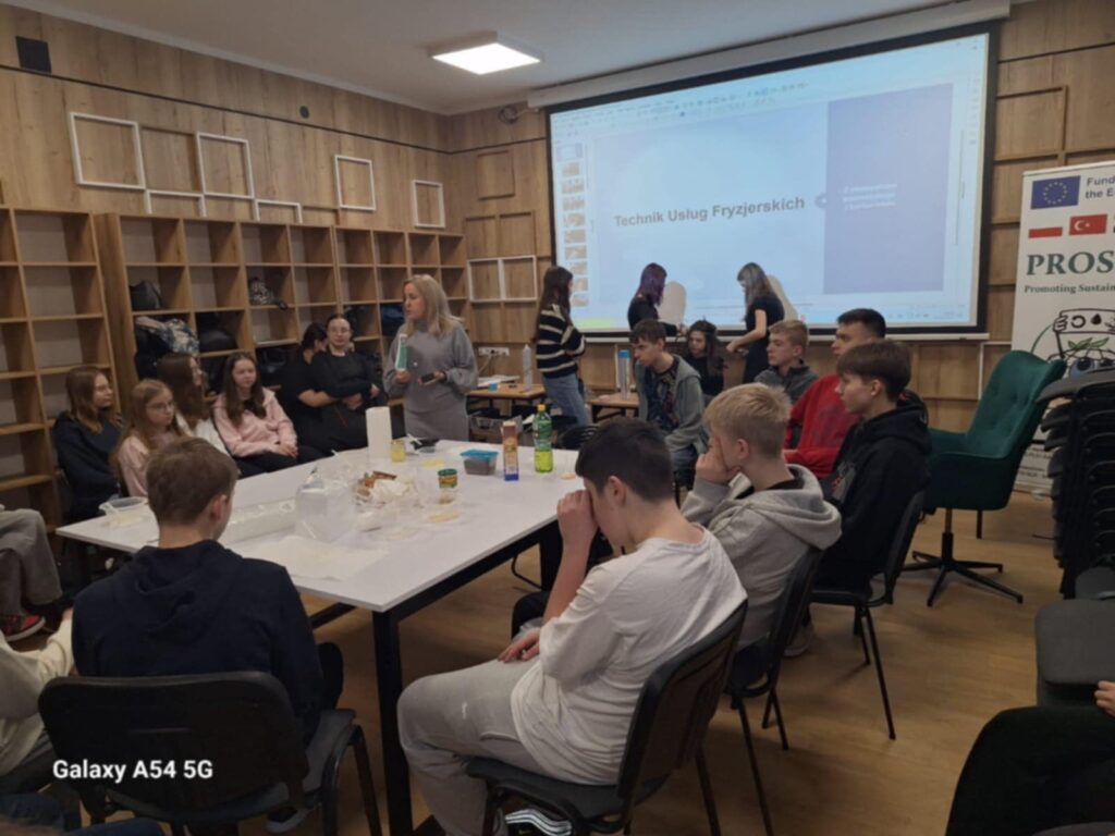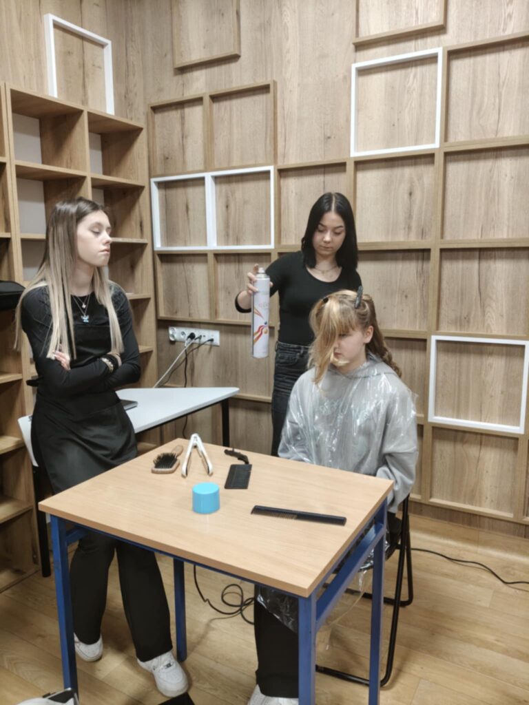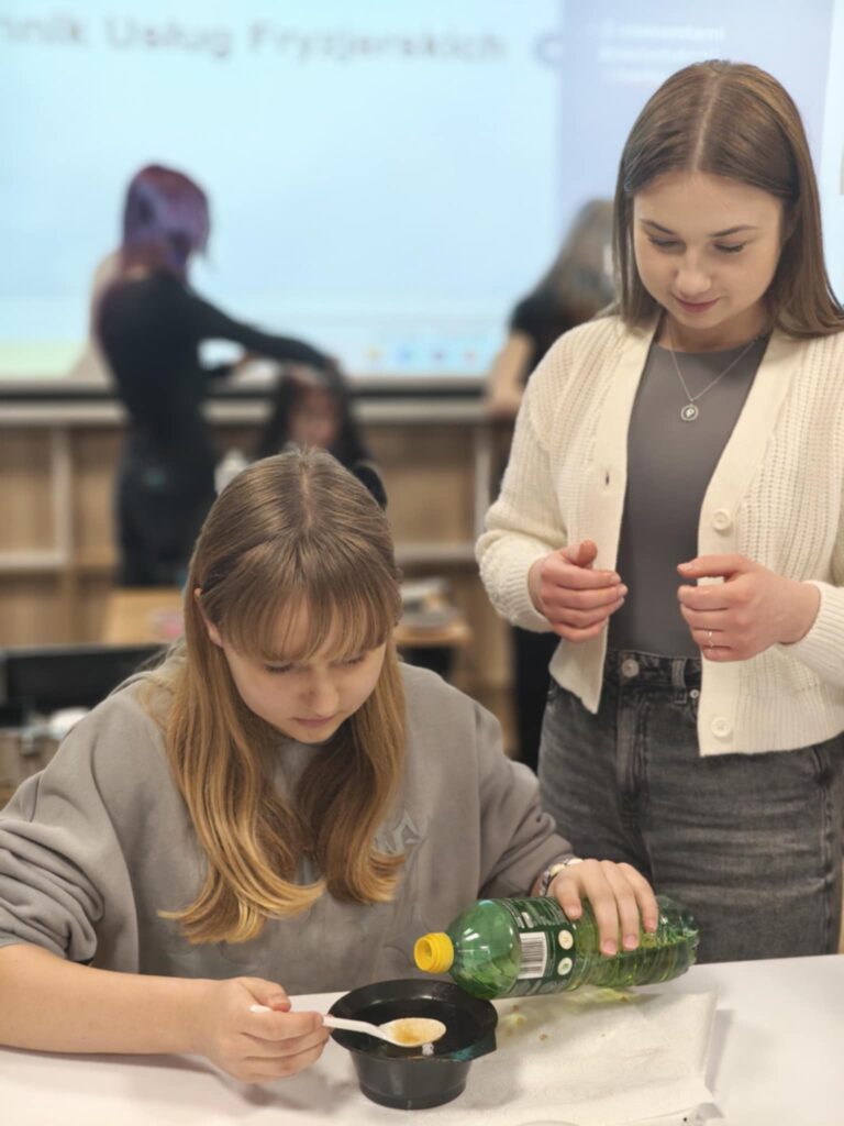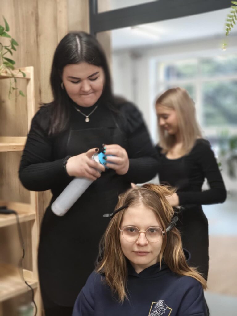 Uczniowie kształcący się w zawodzie Technik Usług Fryzjerskich w Zespole Szkół Zawodowych nr 1 z opiekunami p. wicedyrektor Anną Sadaj-Łaszewicz oraz nauczycielami przedmiotów fryzjerskich p. Edytą Borowiec i p. Anetą Sałek w dniu dzisiejszym odwiedzili młodzież w Szkole Podstawowej nr 11 w Starachowicach. Uczennice klasy 6, 7 i 8 poddały się zabiegom upiększającym włosy i pielęgnacyjnym dłoni. Efektem były piękne fryzury, delikatne makijaże oraz dłonie, na których wykonano peeling z kawy, oliwy i cukru trzcinowego. Uczennice z technikum nauczyły młodsze koleżanki jak wykonać maseczkę odżywczo-pielęgnacyjną na włosy z wykorzystaniem żółtka jaja, oliwy i soku z cytryny. Tak przygotowaną maseczkę dziewczynki zabrały do wykorzystania w domu. Spotkanie w murach SP 11 było okazją do zaprezentowania oferty kształcenia w ZSZ nr 1 ze szczególnym przybliżeniem dwóch zawodów: Technika Usług Fryzjerskich z elementami kosmetologii i barberstwa oraz Technika Stylisty z elementami wizażu i kreowania wizerunku w social mediach.